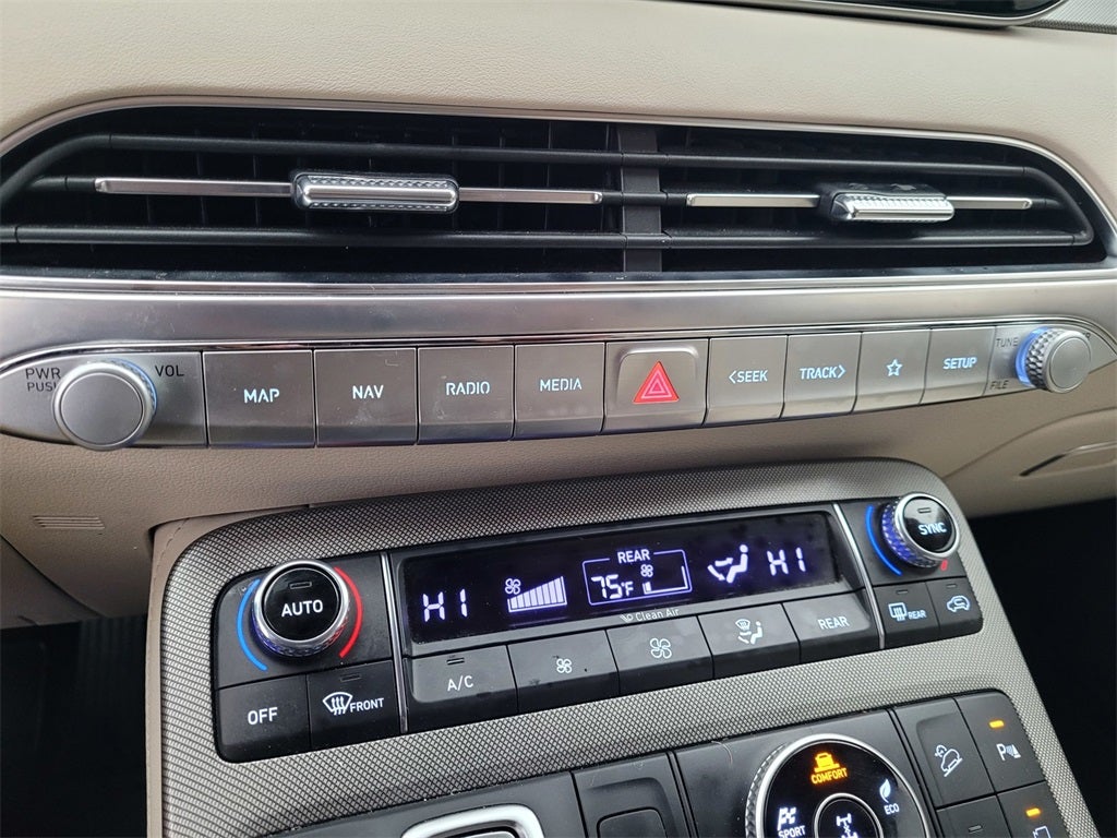 - Radio: AM/FM/MP3 Premium Audio System -inc: 630-Watts, 12-speaker harman/kardon premium audio system, QuantumLogic surround sound, Clari-Fi music restoration technology, 10.25" color touchscreen, on-board navigation, traffic flow including incident data via HD Radio (HERE), SiriusXM, HD Radio, Apple CarPlay & Android Auto, Blue Link Connected Car, driver talk (in-car intercom), quiet mode, multiple device connection (up to 2 devices), USB/Auxiliary input jacks, rearview monitor w/parking guidelines, Bluetooth® hands-free w/wireless audio streaming and wireless device charging (for Qi-supported devices)