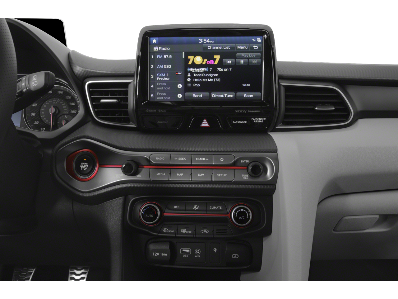 - Radio: AM/FM/SiriusXM 8" Display Audio -inc: Apple CarPlay, Android Auto, Infinity premium audio w/8 speakers including subwoofer and external amp, Blue Link (Gen 2) connected car system, active sound design, dual charging USB ports, Smartphone/MP3 auxiliary input jacks, Bluetooth® hands-free phone system w/voice recognition and speed-sensitive automatic volume control